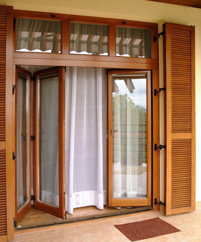 - складные двери напоминают внешним видом гармошку или книжку. В состав дверного полотна входят 2–3 панели, шарнирно соединённые между собой. Полотно складной двери крепят к боковому профилю, а каретку и роликовые элементы монтируют в верхней части проёма. Такие двери не гарантируют высокий уровень защиты от запахов и звуков, поэтому в качестве входных дверей большого применения не находят.