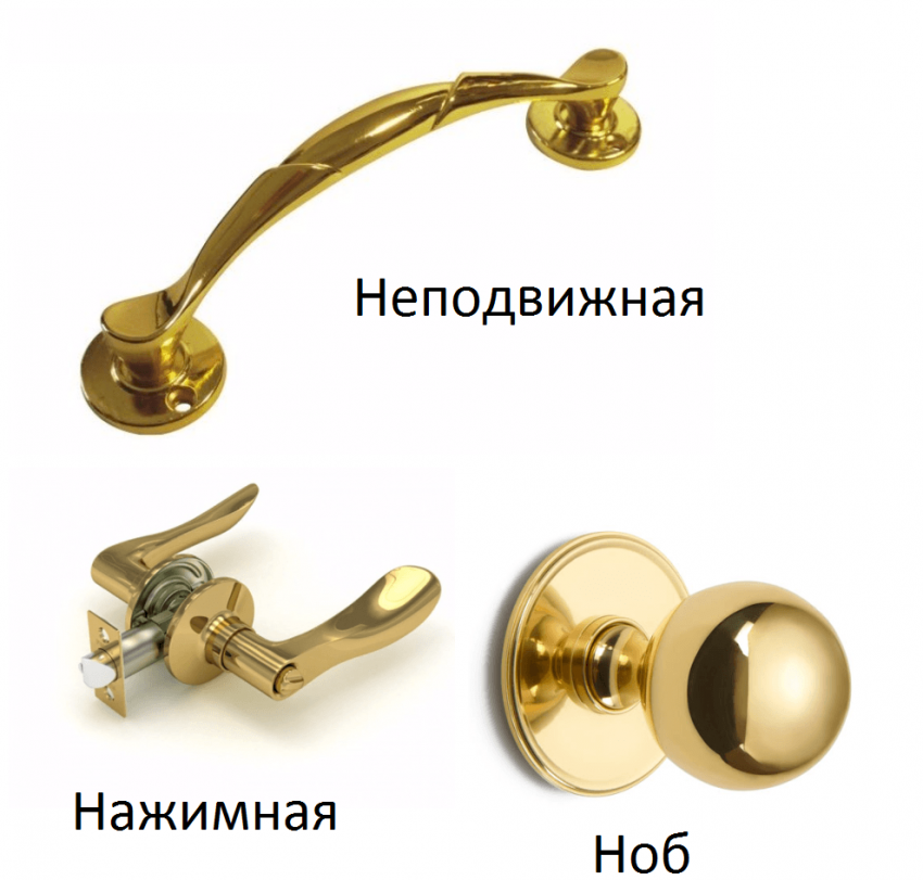 - неподвижные: такие ручки не связаны с замком, используются для входных дверей общего пользования.
