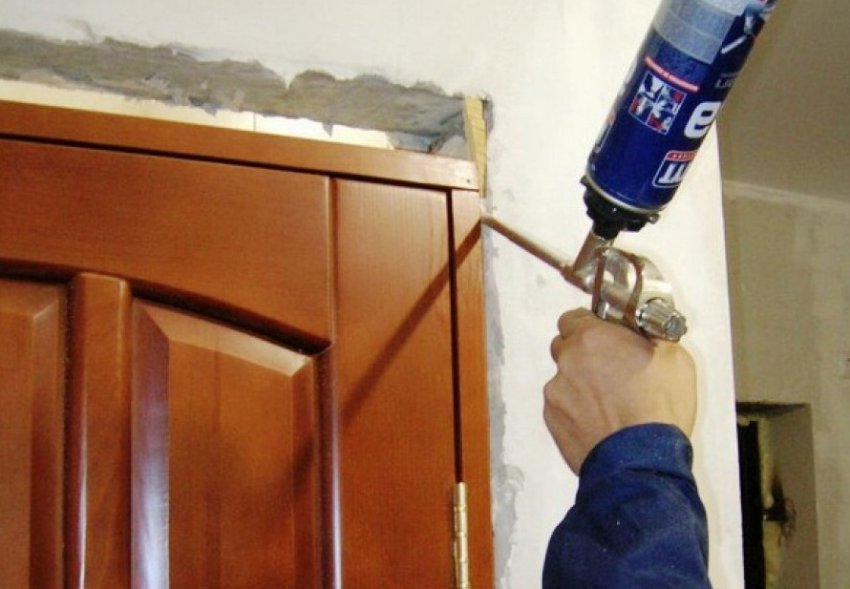 Заполнить зазор между проёмом в стене и рамой двери проще всего монтажной пеной