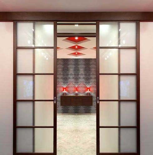 - Раздвижные двери. К достоинствам таких изделий относят эргономичность, надёжность, хорошие звукоизоляционные показатели. По типу перемещения их подразделяют на параллельно-сдвижные и складные: