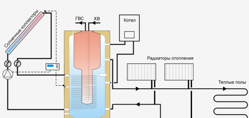 Чтобы горячая вода начала вытекать из крана, важно не только выбрать коллектор, но и создать для него целую систему из накопительного бака, соединительных труб, кранов и других элементов.