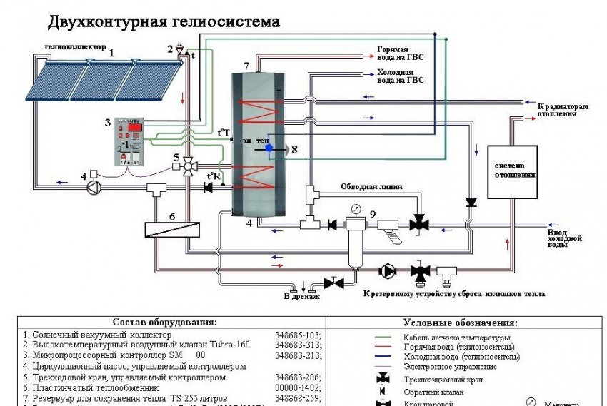 В двухконтурной системе циркуляции нет прямого контакта между теплоносителем солнечного водонагревателя и водой
