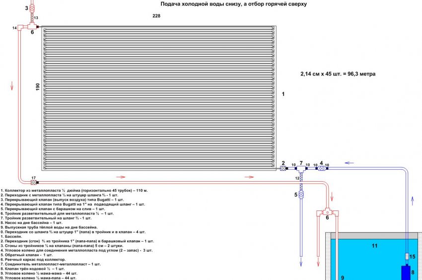 По описанной схеме собирают коллектор мощностью 1,6–2 кВт.