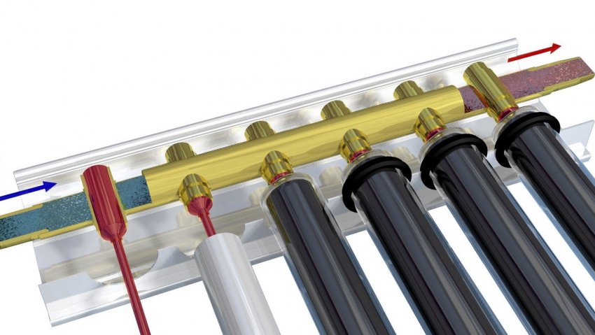 Отдельные трубки подсоединяются к основной трубе вакуумного водонагревателя