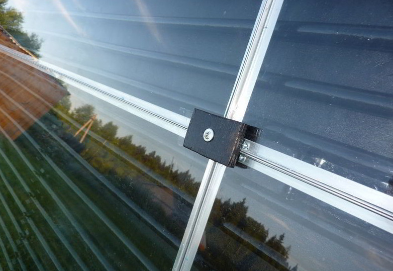 - Закройте верх короба прозрачным стеклом или монолитным поликарбонатом. Если нет возможности использовать цельный лист, сделайте алюминиевую рамку в размер имеющихся фрагментов (лучше не больше четырёх) и надёжно закрепите панели. Каждый стык тщательно обработайте прозрачным силиконом, чтобы водонагреватель был герметичным.