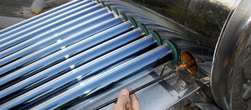 В вакуумных солнечных водонагревателях также используются медные трубки, поскольку этот материал обеспечивает хорошую теплопередачу и одновременно гигиеничность. Остальные элементы аналогичны: стекло (боросиликатное для лучшего пропускания тепла), под ним чёрный поглощающий слой, трубка с теплоносителем и подложка. Герметичность системы обеспечить проще, так как шов только один — соединение между трубкой и накопительным баком.