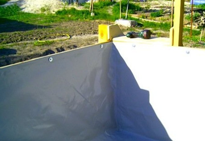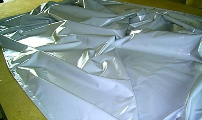 Для изготовления чаши мы будем использовать водонепроницаемый высокотехничный ПВХ-материал, который обладает высокой степенью прочности, практически не подвержен растягиванию и не пропускает воду. Лучше всего использовать полотно производства Бельгии шириной 2,5 метра. Его средняя удельная плотность составляет 650 г/м2, поэтому оно сможет выдержать большое давление воды.