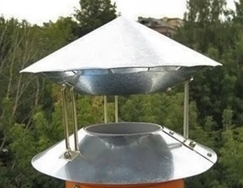 На оголовке дымохода обычно установлен зонт или дефлектор, перед чисткой его необходимо аккуратно снять и положить рядом, следя за тем, чтобы он не упал