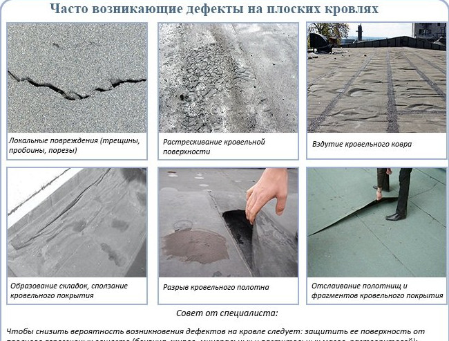 Наличие вздутий, порезов, растрескиваний кровельного покрытия является предпосылкой для проведения ремонта