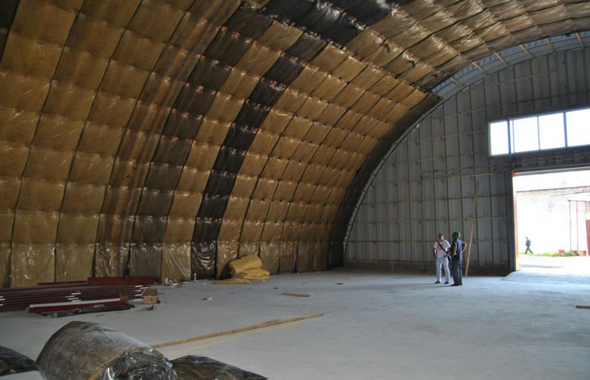 При утеплении арочного ангара рулонной минватой утеплитель даже не приходится резать