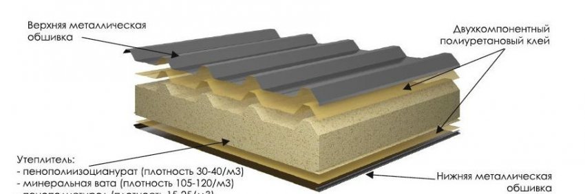 - внешнего слоя — декоративной облицовки из профилированного металлического листа;
