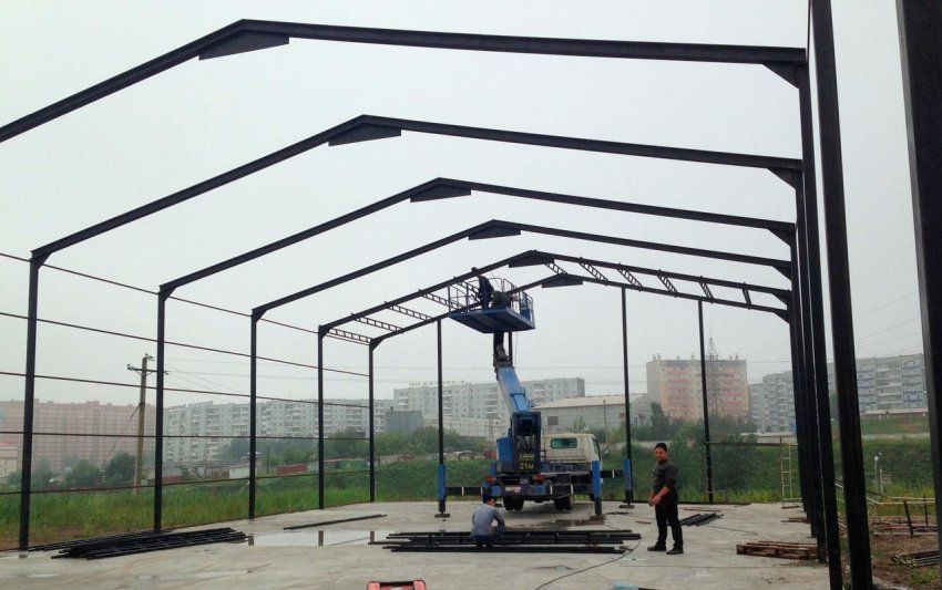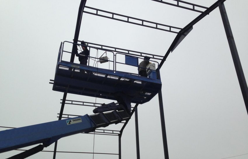 Качественный ремонт ферм ангара может производиться только с использованием подъёмной техники