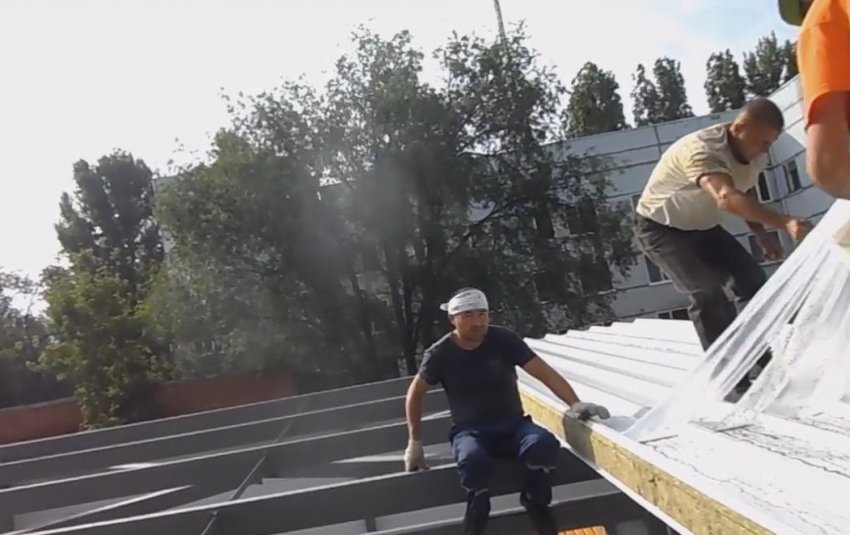 - Поверх металла положите ветро- и паробарьер, швы тщательно проклейте скотчем.