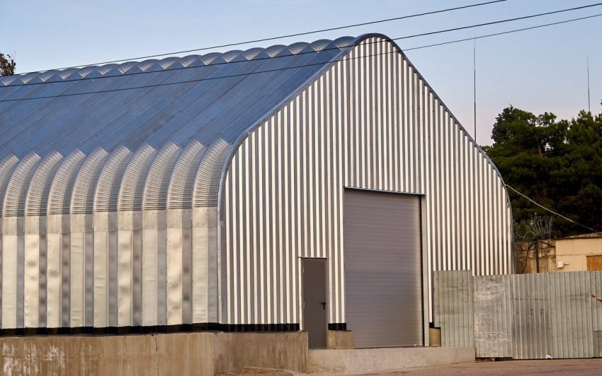Ангар с закруглёнными углами лучше противостоит ветровым и снеговым нагрузкам