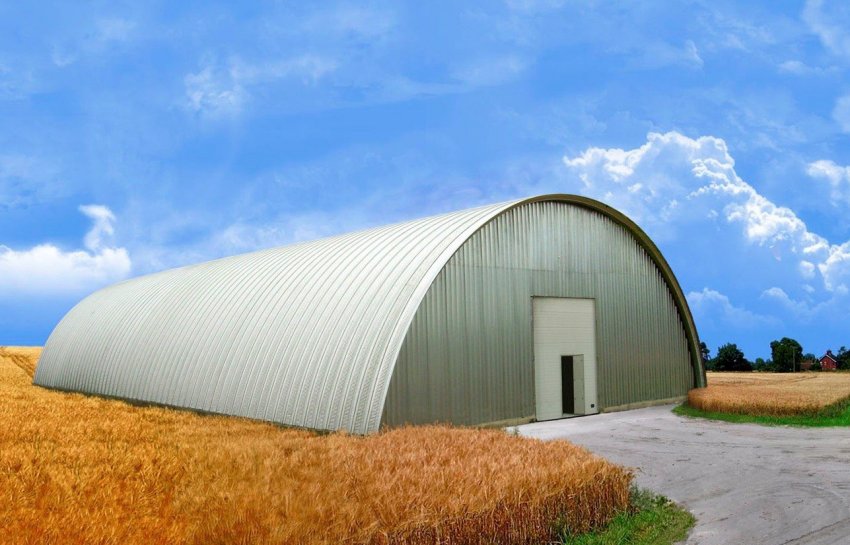 В арочном ангаре удобно хранить сыпучие сельскохозяйственные продукты