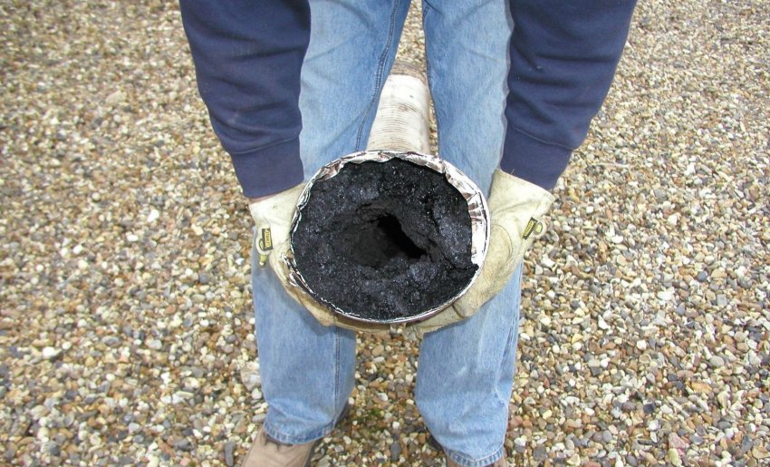 Со временем на стенках дымохода образуется толстый слой сажи, из-за которого сужается проходное сечение канала и заметно снижается тяга