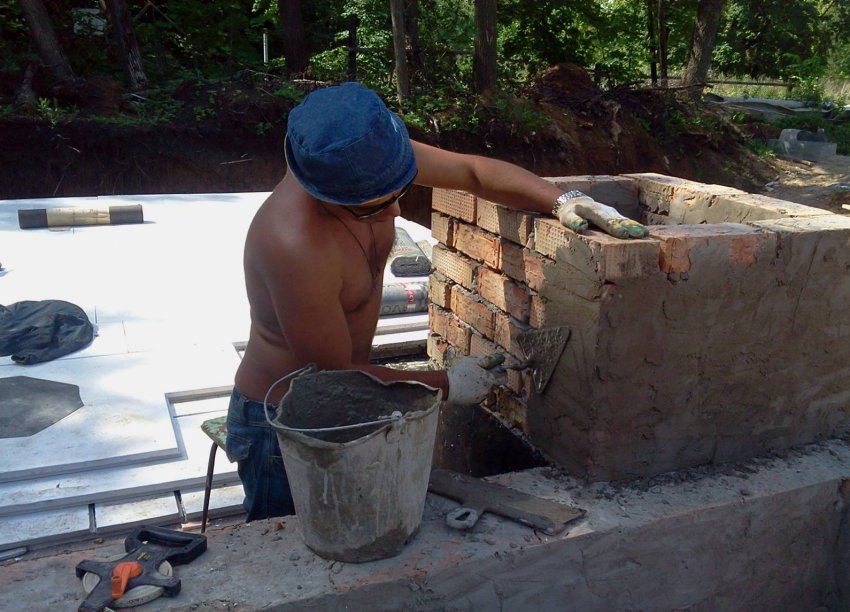 - Сооружение кирпичной трубы требует определённых навыков каменщика, не всякий сможет выполнить эту работу правильно своими руками.