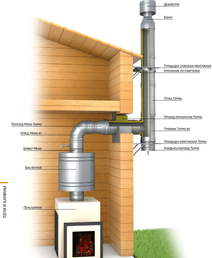 Установка дымохода в бане