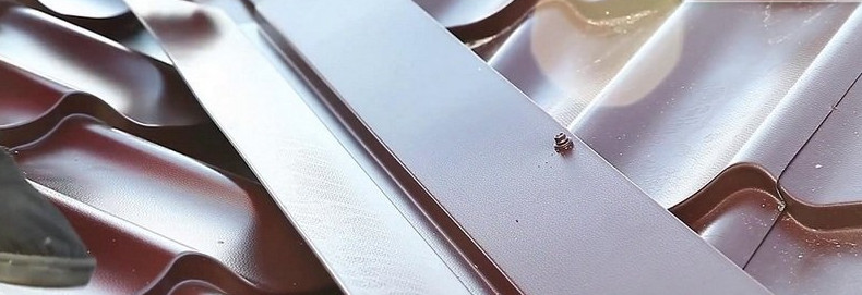 - Устанавливают декоративные элементы верхней ендовы и закрепляют их в верхних точках примыкающих листов покрытия.