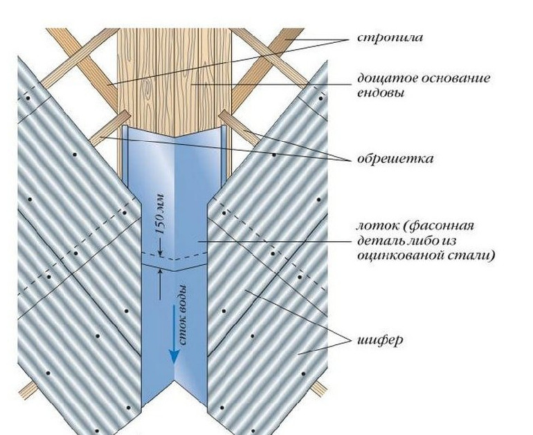 На кровлях из шифера обычно устанавливают стальные ендовы