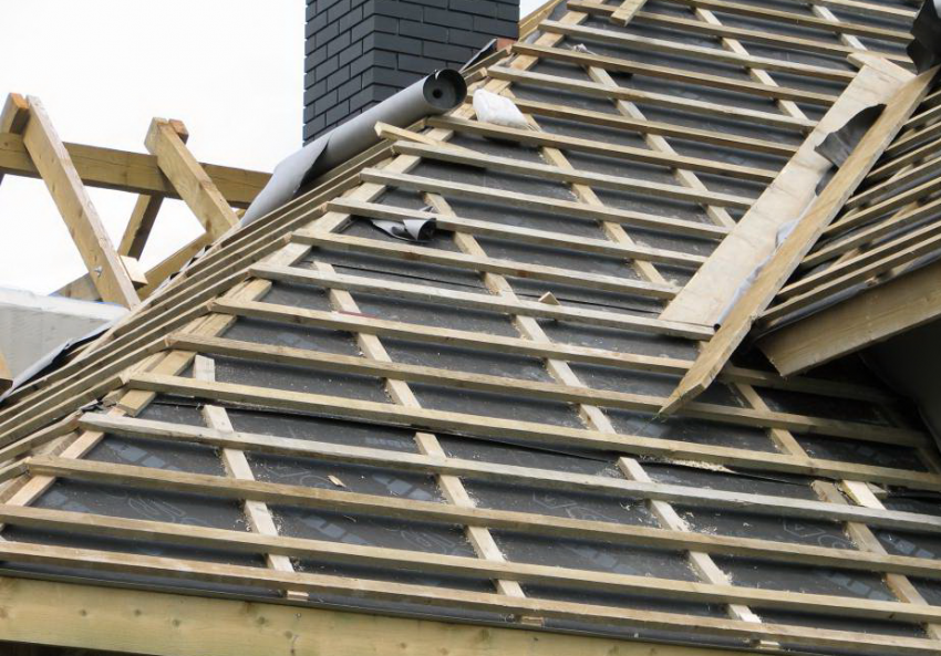 - Сначала оборудуется сплошная деревянная обрешётка со слоем гидроизоляции, для чего хорошо подойдёт рубероид или гидробарьер.