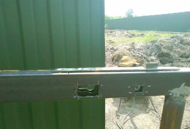 Горизонтальная перемычка из металлического профиля служит для укрепления каркаса калитки