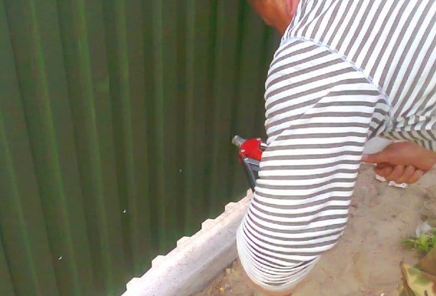 - Металлопрофиль окрашивать нет необходимости. Мы будем красить только каркас калитки специальной защитной краской, а также все места сварки, не пропуская опорные столбы. Это необходимо для того, чтобы каркас прослужил долгое время и не подвергался воздействию коррозии.