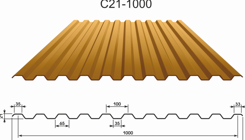 Профильный лист С21 относится к категории стеновых материалов и имеет высоту волны 21 мм