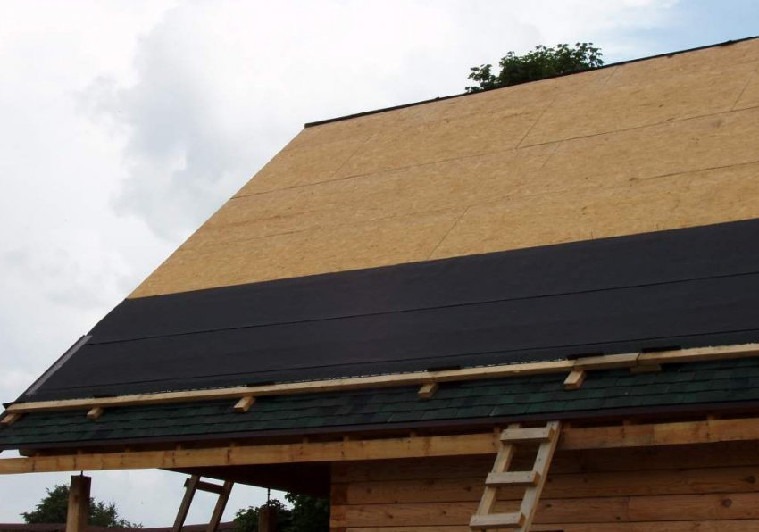 Для гибкой черепицы делается сплошная обрешётка из фанеры, OSB или обрезной доски