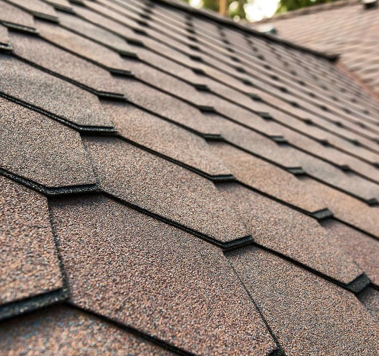 Элемент покрытия из битумной черепицы представляет собой многослойную конструкцию: