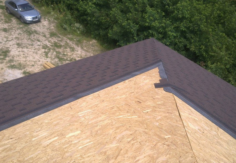 Конёк крыши из мягкой черепицы выполняют из особых элементов, специально предназначенных для обработки стыков