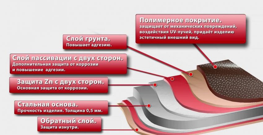 Несколько слоёв обеспечивают защиту металла от коррозии