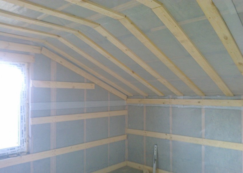 Рейки обрешётки фиксируют пароизоляционную плёнку, образуют вентиляционный зазор и служат каркасом для крепления финишной отделки