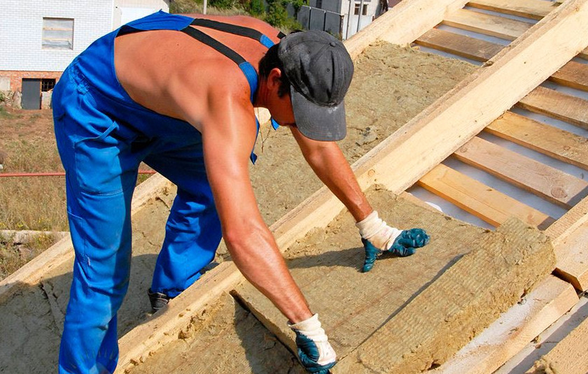 Плиты минеральной ваты должны заходить в промежутки между лагами враспор и держаться там без дополнительного крепления