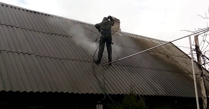 Пеноизол наносится на крышу методом напыления