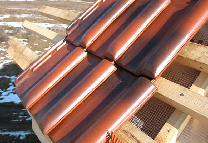 - средний вес плитки черепицы достигает 2 кг, а общая масса материала довольно велика и требует надёжной стропильной системы и частой обрешётки.