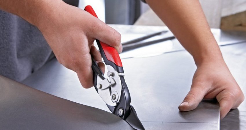 По нанесённым контурам детали вырезаются ножницами по металлу