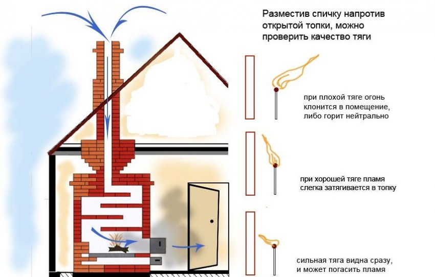 Перед розжигом печи нужно проверить тягу, поднеся зажжённую спичку к топке и не забыв открыть при этом шибер