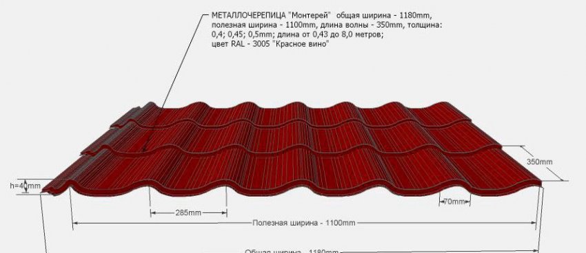 Выбирая металлочерепицу «Монтеррей» как укрывной материал для кровли, в первую очередь нужно обратить внимание на длину и ширину листов, которые подразделяются на полную величину и полезную: