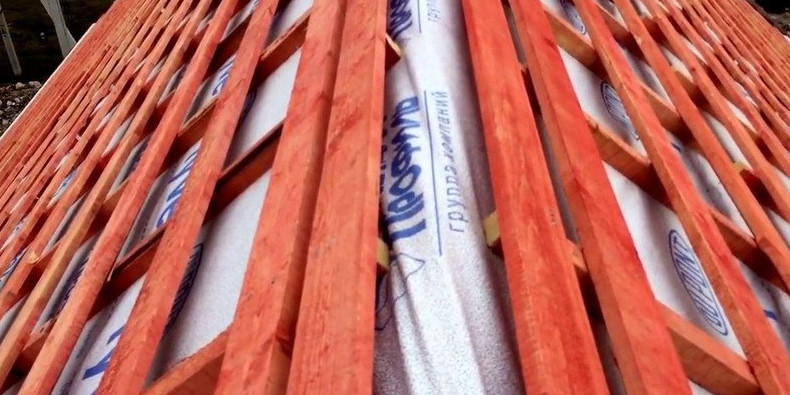 - Поверх контрреек набивают обрешётку параллельно коньковому хребту.