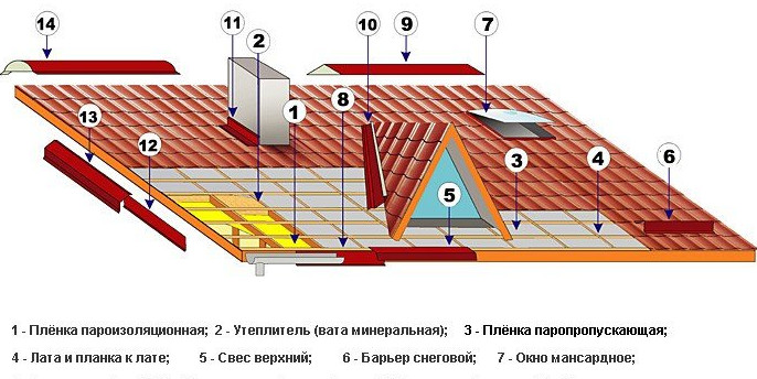 Начинают работу с обустройства кровельного пирога, куда входят: