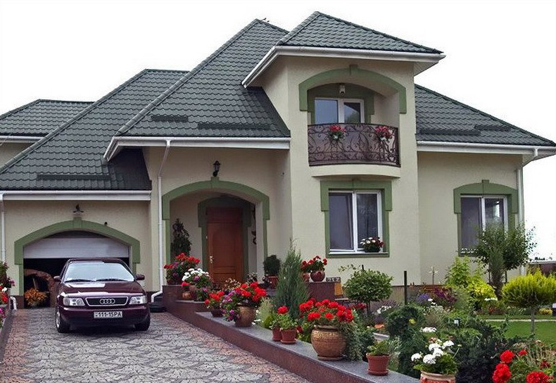 - колоритный жёлтый, глянцевый красный, живописный зелёный и другие яркие цвета смотрятся, конечно же, броско, но используются реже. Поскольку обязывают фасад дома соответствовать им, иначе они его просто будут подавлять.