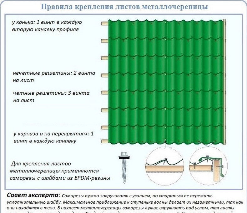 - Желательно, чтобы крепёжные элементы и металлочерепица были одного производителя.