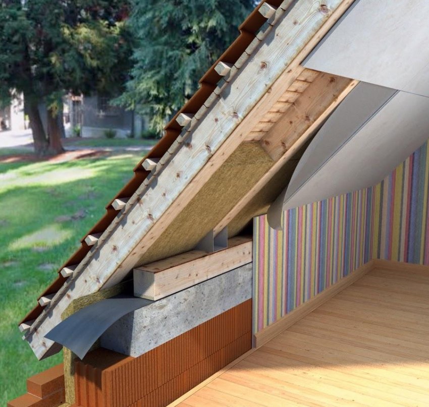 - не поддерживать горение (поскольку основной конструктив крыши делается из дерева, применение горючего утеплителя может привести к быстрому разрушению дома);