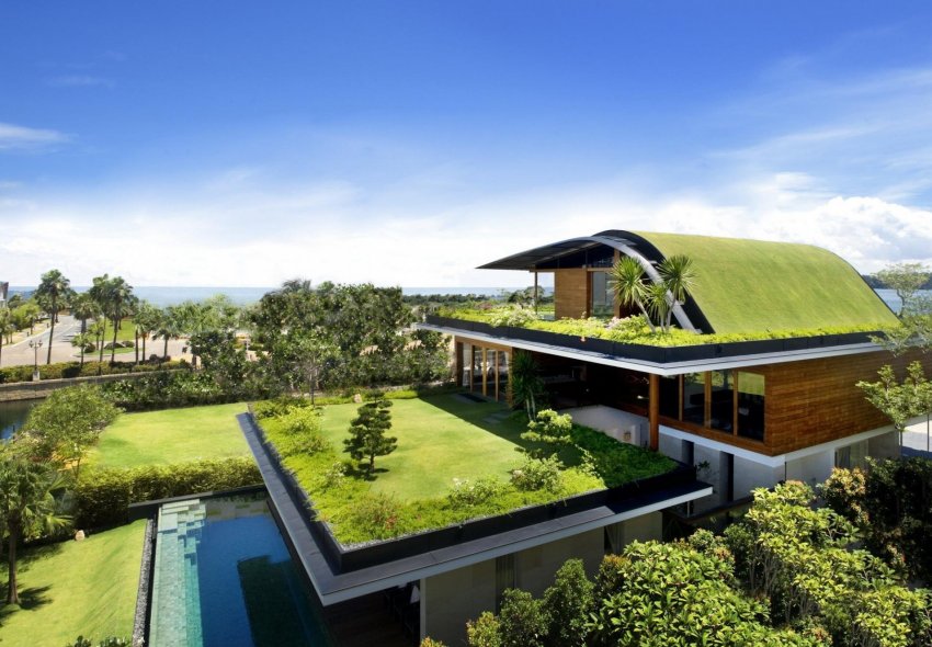 Зелёная экологичная крыша не только красивая, но и очень тёплая, потому что под ней лежит пенопласт