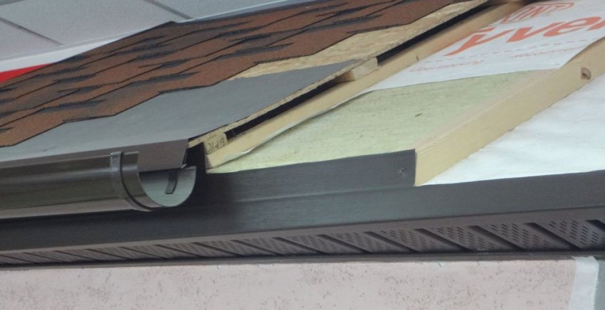 - Установка вентиляционного зазора высотой около 5 см. Внизу монтируется приточное отверстие, наверху вытяжка. Вентиляция предотвращает появление сосулек зимой и отводит избыточное тепло в жаркие летние дни.