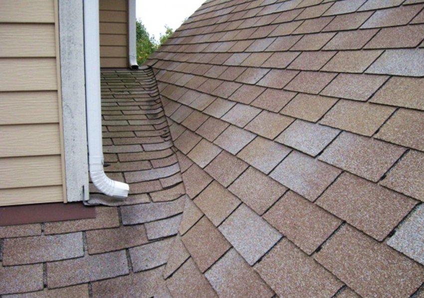 - Установка мягкой кровли на скате с уклоном меньше допустимого предела. В этом случае на крыше со временем образуются протечки, так как стыки гонтов подвергаются повышенным нагрузкам в дождливую и ветреную погоду.
