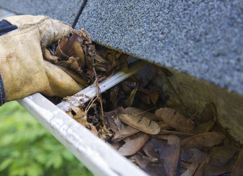 Обычно это делается осенью, когда заканчивается листопад, ведь именно листья больше всего забивают желоба. Их просто надо удалить руками или веником.