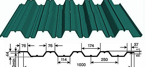 Чаще всего кровлю кроют профилированными листами с волнами высотой не менее 1,8 см. Максимальным считается подъём гребня материала на 7,5 см.