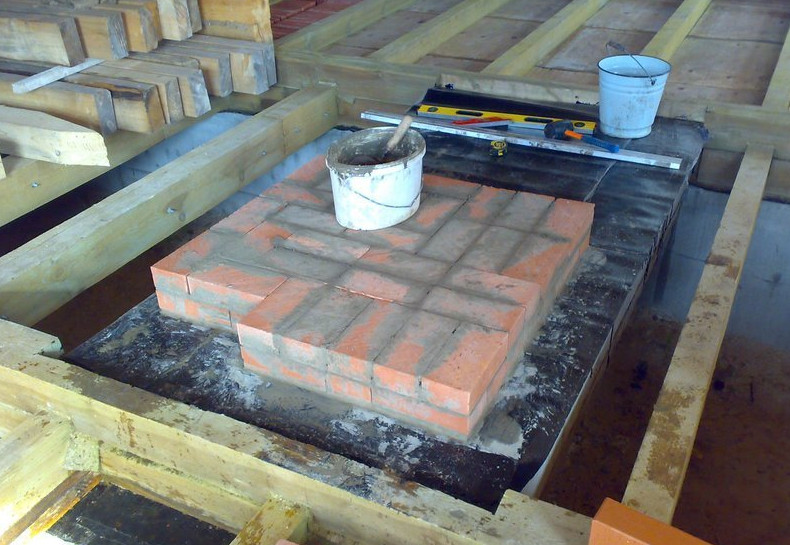 Перед установкой печи производят заливку фундамента и делают отверстия в межэтажных и чердачных перекрытиях.